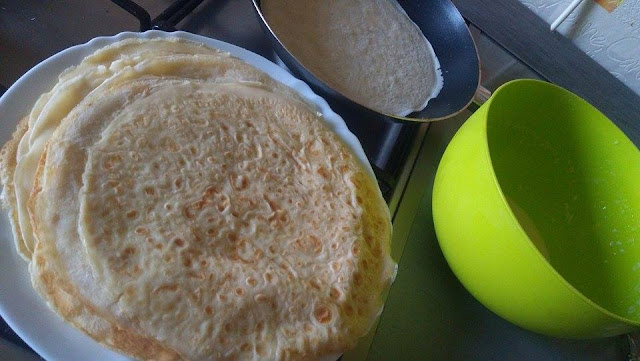 więcej wody bo ciągle ciasto wydawało mi się za gęste. Dzięki jajku naleśniki